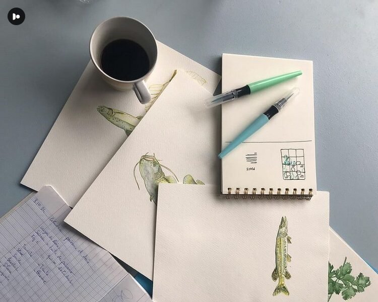 Son travail, principalement en aquarelle et en gravure, s’articule autour de l’anatomie, la faune et la flore. Passionnée par la gastronomie, férue de vin et désireuse de promouvoir son terroir, elle est l’une des co-fondatrices des Sirènes de Loire.